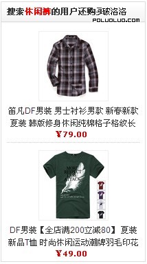 類似商品?為什麼是類似商品呢?大家都知道,單個關鍵字的搜索永遠不是那麼准確的,沒人敢說你搜休閒褲就不會搜到類似這種商品:非常適合搭配休閒褲的T恤,很明顯,這個產品是一件T恤,並不是休閒褲,但是其標題裡包含有休閒褲三個字,所以這裡描述只能寫類似商品,否則用戶進來了還有其他商品就會感覺這個網站很垃圾,我明明搜的是休閒褲,卻搜到一個t恤。