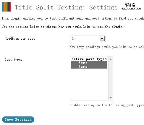 Title Split Testing插件是一個免費插件,可以為每篇文章和頁面創建多個不同的標題,然後隨機顯示給不同的用戶,去發現哪一個標題能被用戶喜歡。在幾個小時的測試後,就可以選擇一個最好的標題給所有的訪問者。同時可以逐步了解到你的用戶喜歡什麼類型的標題,短標題或長標題,有趣的標題或嚴肅一點的標題。這個插件也可用於測試用戶行為。