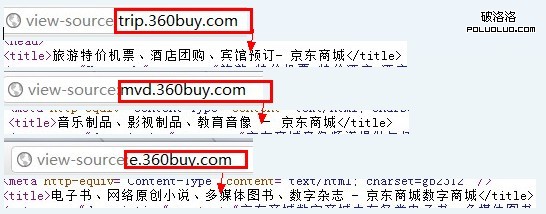 下面筆者列舉幾個二級域名的title讓大家看一下京東發展下的二級域名的title的設置,如圖: