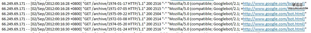 為了驗證自己的判斷,通過Editplus打開了LOG文件,不出所料幾大蜘蛛在抓取archive目錄時陷入了死胡同。
