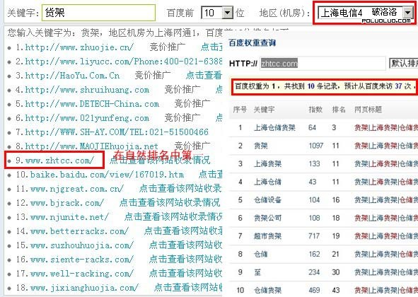 第一,除了百度服務器外,有很多工具類站點的服務器都在北京。大家都知道,百度對於行業的排名結果,不同的區域是不一樣的。而排名是一些工具站點計算所謂“百度權重”的基礎。比如我們做“貨架”的,要想在工具站點上得到更高的權重評價,是需要在這個工具站點的服務器所在地,表現出更好的排名優勢。