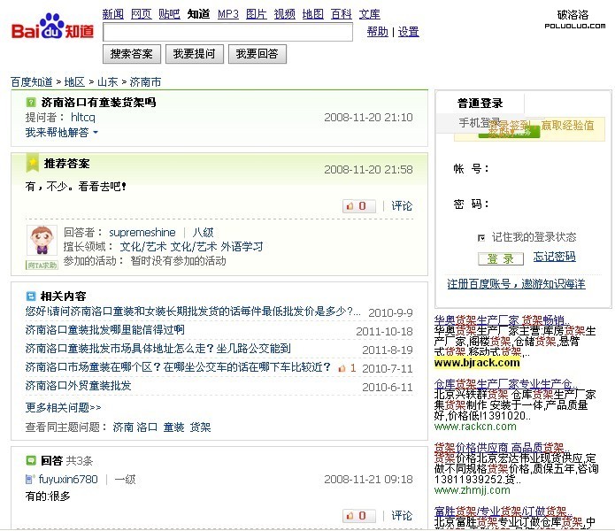 上圖是百度知道的網頁快照,可以看出,右邊側欄的競價廣告全是北京的企業。一個行業相關的知道頁面成千上萬,那麼,只要快照沒更新或更新時還有競價廣告展現,這個外鏈是很有效的。本文由www.zhtcc.com貨架原創發布。