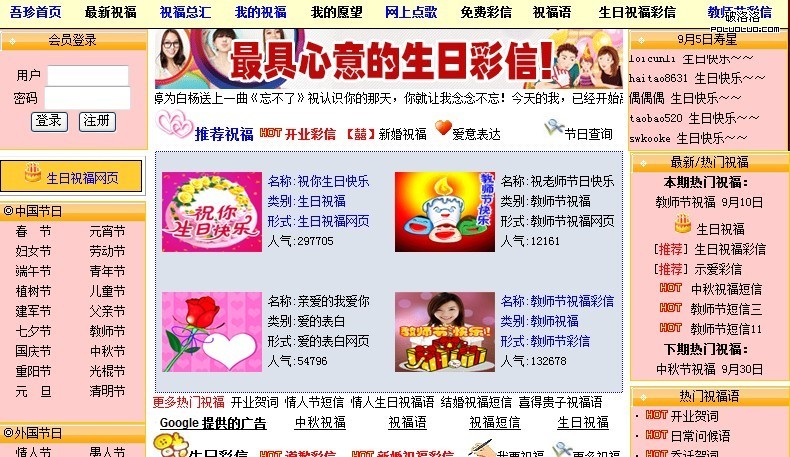 第三點,整個網站的布局和字體也顏色。像祝福類的,首選帶喜慶的顏色,紅粉之類的,這塊我也不是很懂,你可以參照你的同行,看下人家的布局,常說的一句話,知己知彼,才能百戰百勝,你要試著去學會分析你的同行或者競爭對手的網站布局,SEO優化方面的設置,你會發現你一些不足地方,加以改進,閉門造車永遠是夜郎自大