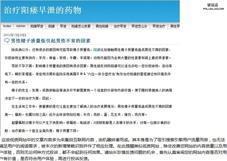 大家仔細看下面的這段話就好,裡面很明確的闡訴了網站要有用戶體驗性,當然文章的原創性也很重要,今天受群裡朋友委托,對他的網站進行下分析,我把他網站的部分截圖給大家看下,網站就不發了,免的有宣傳做廣告的嫌疑
