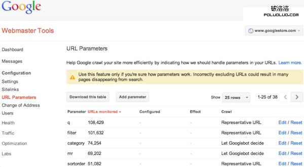 (2) Google的網站管理員工具可以讓你告訴Google參數的處理。