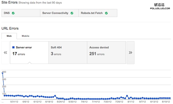 如下圖,你可以從Google的網站管理員工具中知道,是否有抓取時發生的錯誤: