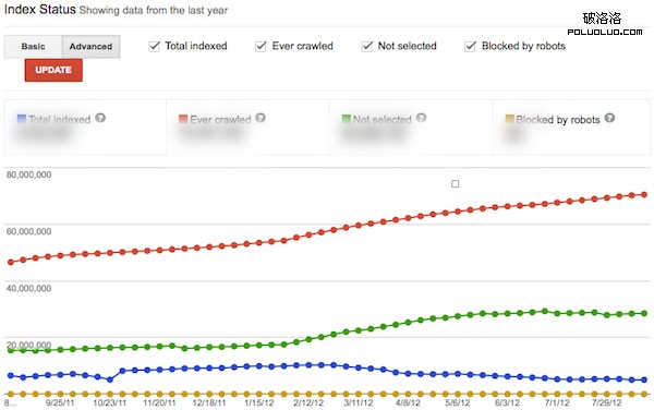 如下圖,你可以從Google的網站管理員工具中知道,被索引的數量: