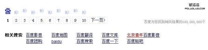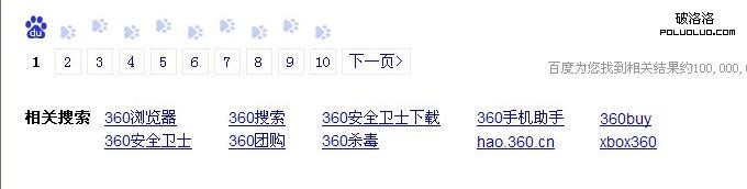 百度還是老樣子以藍色為主色調,紅色則突出百度品牌。對於這次360挑起的戰爭,細心的網友會發現百度在索引結果分頁上增加了百度的logo和熊掌的logo。