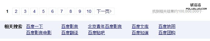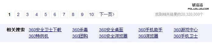 百度搜索結果:第一是百度首頁無異議,第二為百度客服電話是百度的內頁(關於百度),其余的8條都是百度自身的產品。這個沒什麼異議。索引到的結果網頁為100,000,000個比360多出很多,頁尾導航相關搜索360和百度區別不大,幾乎是一樣的看圖: