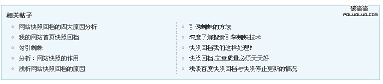 上圖只是以dz為例讓你更清楚什麼叫相關信息,當然在很多門戶網站上面他的叫法也可以是相關資訊、相關新聞、關聯文章,不管叫什麼,總之,這一笑版塊兒,在每一篇內容底部展示了多篇相關內容,蜘蛛在爬去的時候會順著爬過去,這樣就更利於之前不被收錄的內容被重新收錄。
