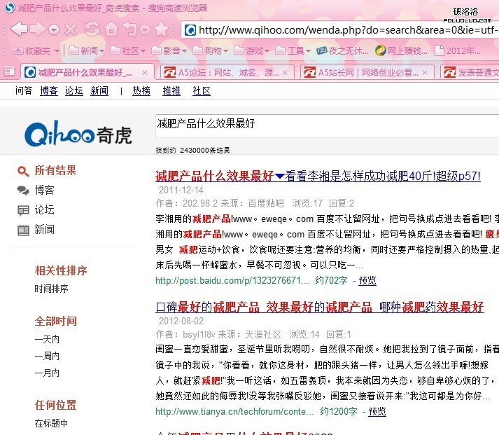 上面是360搜索的獨立域名所展現出來的首頁,現在我們開始點擊左上角的問答看看,然後輸入《減肥產品什麼效果最好》。