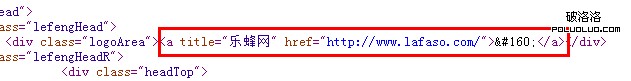 在全站頁面的logo部分竟然出現這樣的標識處,這種直接用鏈接的方式直接回到首頁的時候,一定要加上相關性的文本,比如說“樂蜂網”,這樣的品牌詞,但是對於整站來說,卻沒有出現,這種情況復制到整站的時候,就會影響到網站的相關性,這個細節問題大家也可以去看看,如果在這個地方留空會如何呢?也許你會說不傳遞相關性,僅僅傳遞權重。其實留空的話,你可以直接用一張背景圖片替代,不放鏈接。