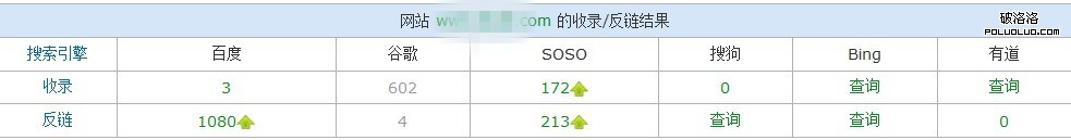 是不是很嚇人?谷歌收錄量達到了1000多,而然我告訴你更嚇人的是,網站剛上線時站上只有幾篇文章谷歌收錄量就已經達到了800多!他的站剛開始“搜搜”還是有搜錄的,數量是谷歌的一半,現在連“搜搜”也對他的網站忘而卻步了,搜錄量為0,由於百度的智能化可能一開始就察覺到了他的網站所存在的問題,所以一開始就不收錄以至於建站到現在兩個多月來一直沒有什麼起色。