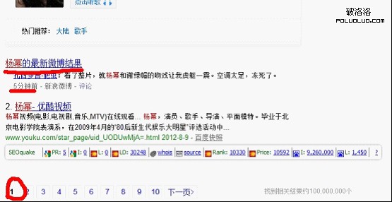 其實如果細心的人也會發現:微博的內容在搜索引擎中出現的頻率和重要性也越來越高。比如我們搜索楊冪: