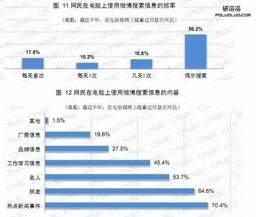 另外值得注意的是,有28%的微博搜索用戶每天都在微博上進行至少一次信息搜索。信隨著微博向人們生活滲透的更深入,企業用戶越來越多的把內容搬到微博上等等這些趨勢,這一比例還將上升。下圖來自CNNIC。