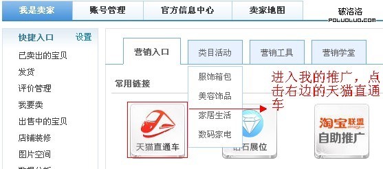 2.進入店鋪後台後,點擊我是賣家,進入店鋪後台後,找到營銷中心的我要推廣,點擊進入。