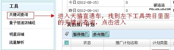 3.進入直通車後台的關鍵詞搜索功能,然後在搜索框,輸入需要查詢的關鍵字。例如18k白金項鏈。