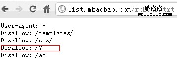 從這張圖中,作者用兩個網址之間的對比來展示這些區別,但是也僅僅是看到了表面的現象,如果我們需要處理的話,可能有兩種方法,第一種就是如同mbaobao所制作的一樣,大家直接看list.mbaobao的robots.txt設置,上圖之