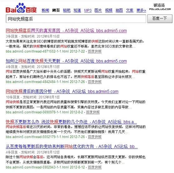 筆者看過很多seo論壇上許多這樣的咨詢問題,大體上一些seo朋友解答都認為:一是網站本身沒有堅持更新,二是百度數據庫出問題。對該問題的處理辦法要不是讓他繼續等待就是投訴快照,這不能從根本解決首頁快照落後的問題。
