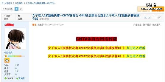 權重高的平台才會讓你的關鍵詞有好的排名。並不是所有高權重平台都可以讓你發布鏈接,但總會有些漏網之魚。參考其他人如何選擇的,你就可以在相應的平台同樣操作。比如,筆者今天查詢了“跳水女子雙人3米跳板決賽”這個詞,指數在2k以上,呈上升趨勢。百度搜索結果中,第一名是百度視頻,第二名是相關信息,第三名是一個視頻網站,第四名是大河論壇,第五名是貓撲,剩下的五個結果都是新聞。除了大河論壇之外,不少人也利用蝦米網來做奧運詞匯的排名。這個方式確實是一個來流量最快的方法。