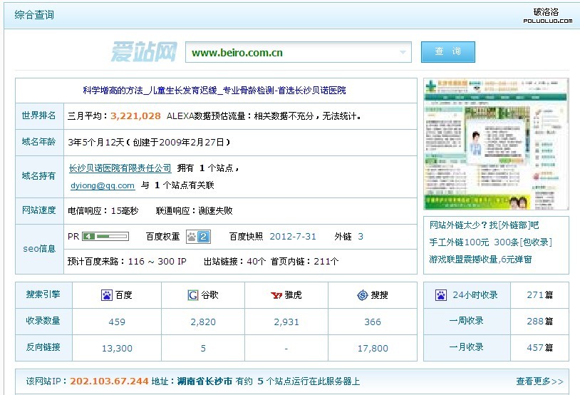 當然,也許有大神又得說了,是不是我的站長工具用錯了,所以我又用其它的站長工具查詢了一下,比如愛站,結果還是一樣,依舊是7月31日。