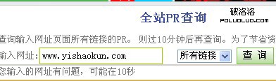 另外當你PR慢慢提升的時候,記得也查看內頁的PR,當內頁PR也在慢慢提升的時候,可以適當采用“法律快車”網站的一套方式,欄目PR合適的時候也可以利用欄目PR去跟一些頂級域名交換鏈接,相當於你那時候就已經是第一種方法的“對方”了。通過這樣操作可以提升權重獲取排名,這樣才能達到全站權重的提升,而不只是光靠首頁。另外下面工具查詢整站PR值。