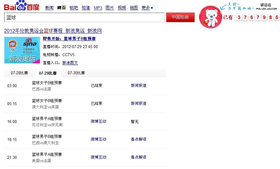 同樣的,在多次嘗試輸入奧運項目或奧運健兒醒目進行搜索發現,這搜索結果還存在一個特點。當搜索奧運健兒姓名之時,自然排名第一的均是該奧運健兒的百度百科,同時還直接給予該奧運健兒的個人相關信息,而反觀搜索奧運項目的話,其自然排名第一也均為奧運項目的比賽賽程情況。而百度此舉也說明其對用戶的搜索習慣進行了研究與了解,能夠從用的需求出發,優化搜索結果反饋信息。如此,能在用戶搜索後,在第一眼便能得到了自己想要獲取的信息。