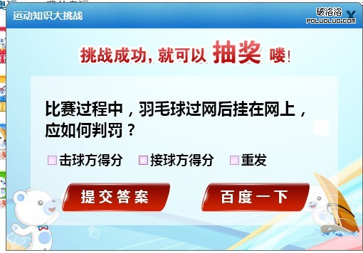 在“中國加油”這一功能中,每收集一枚徽章則有一次抽獎機會,而在抽獎之前還有這麼一個奧運知識問答環節,只要正確回答即可抽獎,如此再參與抽獎活動之余還能學習相關知識,而哪怕是答錯了還是可以重新回答的哦,而不會失去抽獎機會,百度如此做法,對用戶而言自然很是友好。