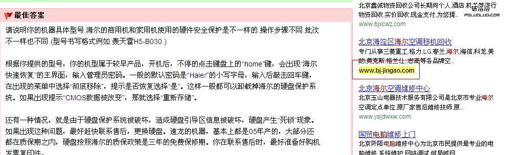 通過domain語法查詢,返回大量的百度知道頁面。同樣的通過百度快照,這個域名之前是家企業站,並且做了百度的競價排名,這就產生了大量的百度產品鏈接。