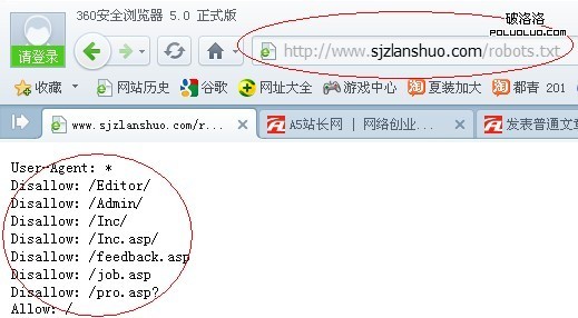 第三,沒有robots.txt文件,robots.txt是網站與搜索引擎對話的一個文件,網站本身很多東西無需讓搜索引擎抓取,當蜘蛛不斷的去抓取這些無用的內容,浪費的是流量和蜘蛛的時間,這樣的結果就是造成網站重要頁面無法收錄,最終影響網站整體權重的提高。解決辦法:建立一個與搜索引擎通話的文件,robos.txt如下: