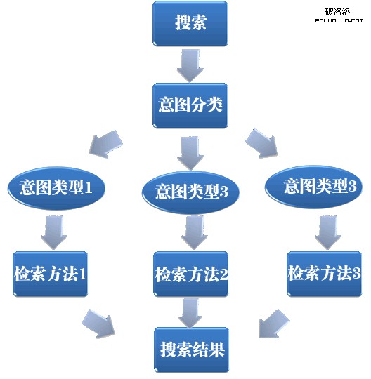 用戶發出的每個搜索請求背後都隱含著潛在的搜索意圖,如果搜索引擎能夠根據查詢詞匯自動找出背後的用戶搜索意圖,然後針對不同的意圖,提供不同的檢索方法,將更符合用戶意圖的搜索結果排在前列,無疑會增加搜索引擎用戶的搜索體驗。目前搜索引擎已經部分實現了這種搜索模式,比如用戶搜索“北京 天氣”的時候會主動將當天的氣溫等情況列在搜索結果最前面。如圖所示,這種方法的一個結構示意圖。