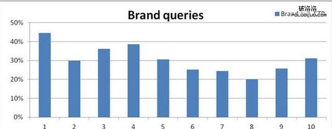 這一數據表明,如果用戶使用品牌查詢,在SERP中的地位仍然低於平均重要研究中的所有查詢,雖然它很重要,總的平均點擊率排名前10位查詢金額30%,這意味著用戶點擊第一個結果頁的三倍以上。從這一結果事實中可以看出,用戶不關心這些短語的位置,他們正視圖找到他們正在尋找他各類來源,比如公司網站,博客,網上商店等等。