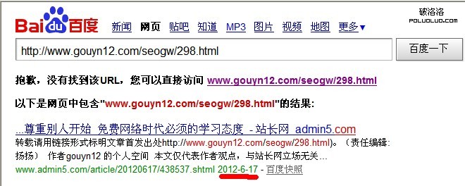 我博客6月17日原創百度到現在也沒有收錄