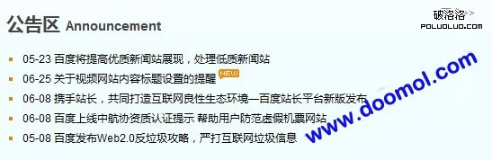 5月中旬,百度站長平台從5月開始發布一系列關於打擊互聯網垃圾的公告,同時開放官方論壇。此時已經有了一些K站的跡象,應該是有一些“試點整頓網站”,如垃圾視頻網站、作弊網站、采集網站。