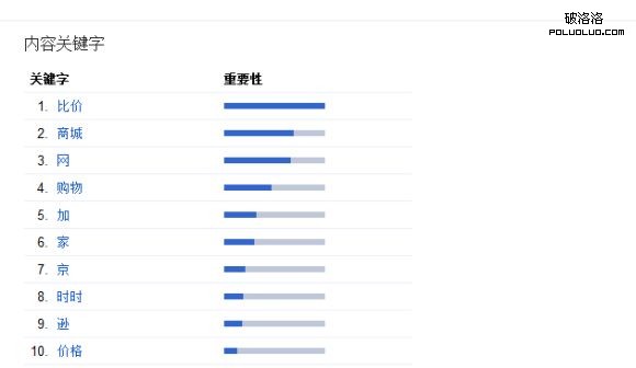 我們分析這個網站,在內容頁標題中,一般以 “XXXX 價格/報價” 為標題。但是我們看整站關鍵詞的相關度,“價格”這個詞的重要程度僅僅排在第十位,甚至不如“京東”和“亞馬遜”(分詞原因)。這樣,在白帽SEO的自然優化中,如果用戶以 “XXXX 價格”為關鍵詞進行查詢,那麼這個網站的內容頁很難排在前列,或者說在這個長尾關鍵詞上,他們的努力需要大過競爭對手很多,才可以獲取排名和流量。