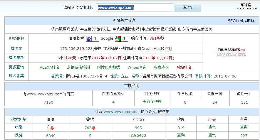 這是我觀察到的第二件百度不尋常的舉動。周一一上班,打開站長工具一查,我的新站流量突然增加到180多,之後幾天最多的時候是630多,像牛皮癬治療最好的方法這樣2200高指數詞直接上到了首頁,高興之余是懷疑,可惜不是首頁的詞,而是一個內容頁的,這馬上引起我的懷疑,發現類似的站還不少,一查domain發現domain不知道掉到第幾頁去了,當時我就想到,這個可能持續不久,果然我的站堪堪也就堅持了一周,我同事另外一個站堅持了應該不到3周吧,這次我觀察到百度特點就是新站domain不在第一,但是流量排名出奇的好,比那些老站還厲害。現在domain已經恢復到首位了,排名也穩定下來了。