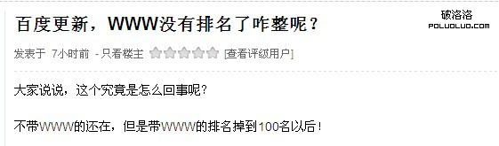 在本人的站出現此情況後,馬上對此進行了分析,發現網站的外鏈和權重都是穩步上升中,而且文章每日堅持更新原創,外鏈也是很有規律的發放,網站快照也很正常,也未對網站進行改版對情況,我可以肯定的是,自己並沒有做什麼過度優化舉動的,理應不會出現百度降權的事件,後來發現我的一個競爭對手的網站(以前排名一向很穩定)也出現的所有關鍵詞不在首頁的情況,我知道:這是這次更新後的一個普遍現象,很多網站都出現了這種情況。後面的搜索也確實嚴重了我的推論,很多網站以前排名很好的網站排名都不見了。