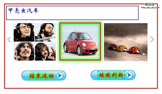 當用戶判斷出圖片之後,只要用鼠標點擊相應的圖片就會在圖片周邊有紅色的方框將圖片圈住,用戶點擊繼續判斷即可提交判斷結果並進入到下一個標注文字的判斷。