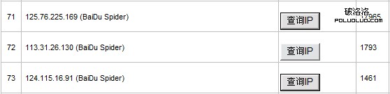 我們知道,百度蜘蛛一般來自於202.181.108.* 和123.125.71.* 這兩個IP段(順便科普一下,這兩個IP段的百度蜘蛛沒有所謂高權重和降權之分)。顯然這三個IP在“常識”中,不屬於百度蜘蛛所屬的IP段。