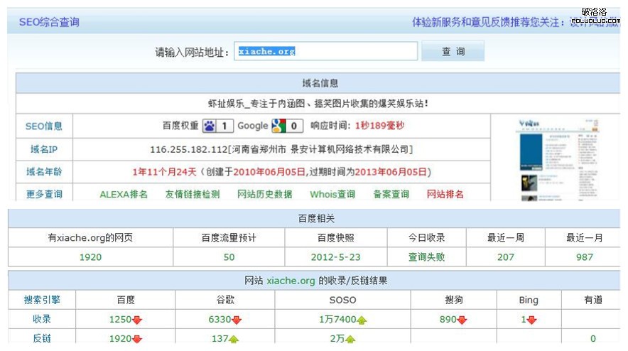 筆者認為網站想建好的最重要的一點就是用戶體驗,一旦用戶體驗上去了,網站發展基本不成問題,所以空間訪問速度就是網站發展的首選因素,空間打開速度慢,會失去50%以上的流量。而且別讓搜索引擎感覺你的網站很慢,這樣的話搜索引擎也不會關注你的站,其次就是在建站好之後不要經常改版,筆者用自己的親身經歷告訴大家,改版可能造成網站收錄量大量流失,通過圖2可以看出只有soso收錄量增加,其他都是減少,這是因為因為網站前幾天剛剛增加了一個欄目,所以收錄量減少,如果萬不得已要改版的話記住一點,網站不要徹底改版,改版應該小部分慢慢修改,可以想象,如果你將網站整體改版,就相當於搜索引擎重新認識你,肯定收錄量會減少,而且在改版的過程中往往伴隨著快照回檔的情況。