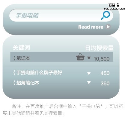 首先百度有一個推廣的後台,從這個後台進去以後有一個關鍵詞典工具,把要找的詞輸進去,然後就能拓展一部分詞出來。但這種方法太花人力成本,比較費功夫,現在可以下載到一些工具,來代替手工的挖掘。