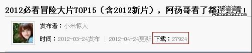 1. 發布聚合類網盤資源外鏈,類如:2012必看冒險大片TOP15,此類資源的下載量驚人,且容易得到官方推薦,下載量大,在外鏈加上適當引導鏈接,那麼從這裡引導的流量是相當可觀的。