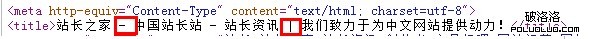上文中我們說到關鍵詞一般最好是使用兩至三個,那麼就需要關鍵詞的分隔符來進行分隔,目前主流的關鍵詞的分隔符有 “ , _ - |” 關於具體用哪個比較好,我個人認為對於SEO來說區別並不大,如何決定看自身站點的情況。當然我們也可以混合使用,然關鍵詞的放置更有層次感,如下圖中站長之家網中分隔符的使用。