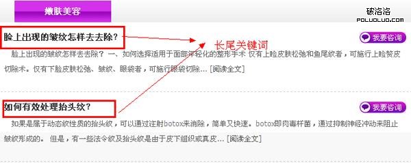 三、樹枝(內容頁)放置長尾關鍵詞