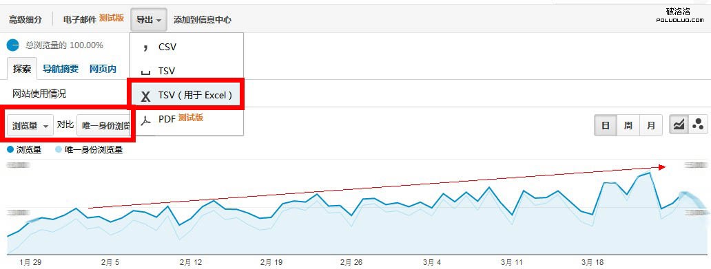 也可以用GA的視圖窗口左上角的導出功能,看自己的喜好吧,提下用GA導出tsv格式比較好用哦~也可以添加到信息中心裡(但是感覺信息中心和標准報告數據不統一)