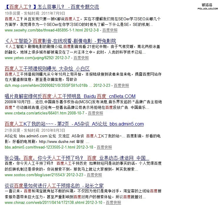 “百度人工干預”這個詞的定義:百度一些投訴及建議,比如:快照投訴建議,百度BUG投訴,百度百科投訴等,這些才是真正的百度人工。很多人就拿到百度快照,百度排名上面去做說法。我的小站,從來沒有去認為百度有人工,也沒有去擔心百度人工。網站常見說的人工有以下幾種: