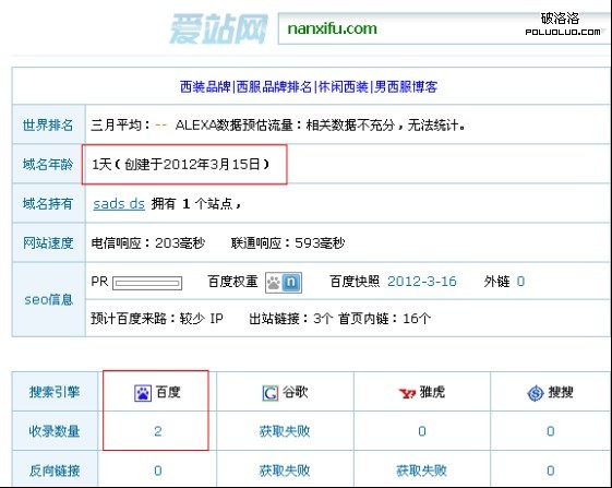 從愛站網上看到沒有只有2個收錄,沒有一個反向鏈接,說明我並沒有做任何外鏈。