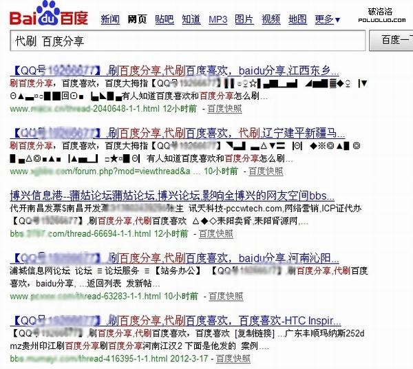 二:刷百度分享次數無異於是一個濫發垃圾信息的策略