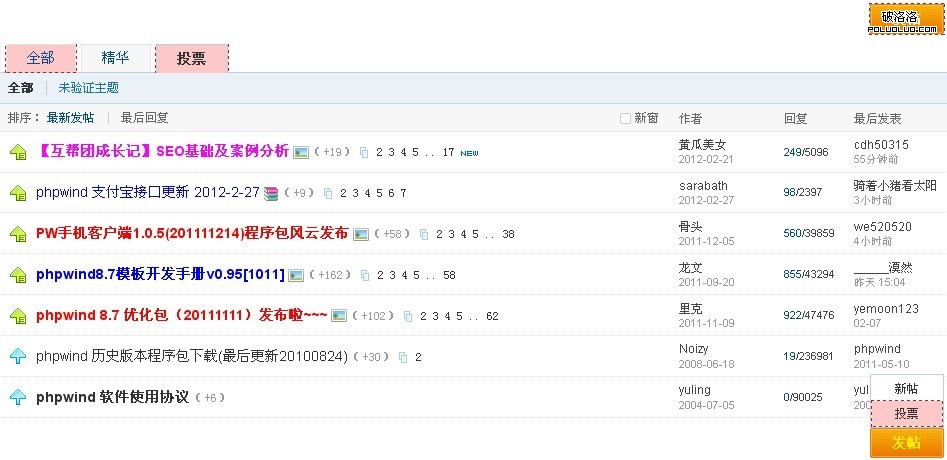 像“發帖”這樣的鏈接有兩個,phpwind選擇nofollow掉一個,顯然是降低蜘蛛對於發帖頁面的抓取,讓蜘蛛更多的去抓取帖子內容。
