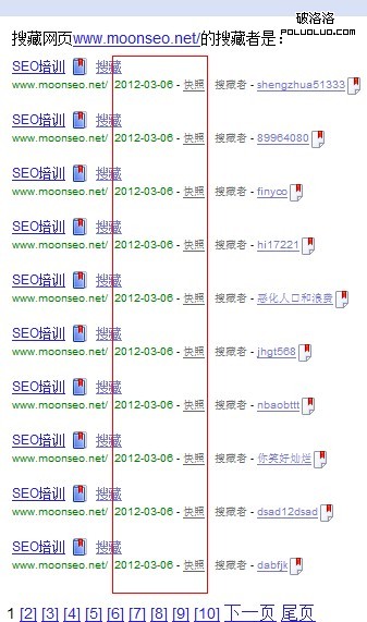 大家可以看一下,第一個搜藏,與後面的搜藏,標題明顯不一樣。真正的搜藏者我想應該不會這麼耐心去寫那麼長的標題。不過這種操作沒有SEO研究中心那麼明顯。